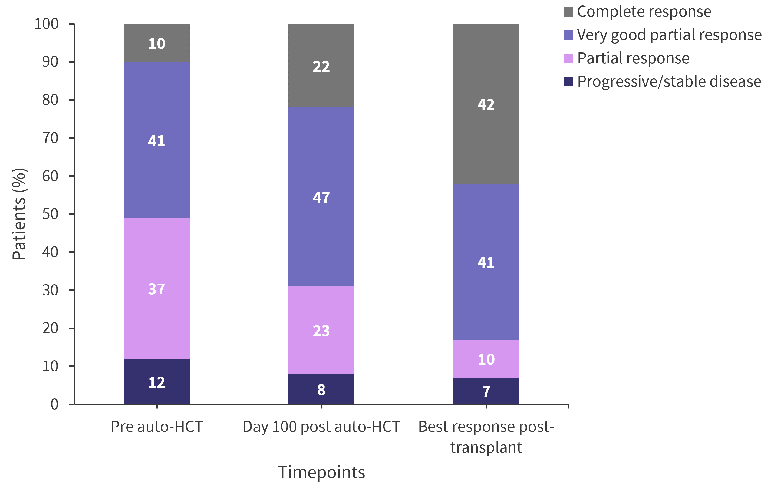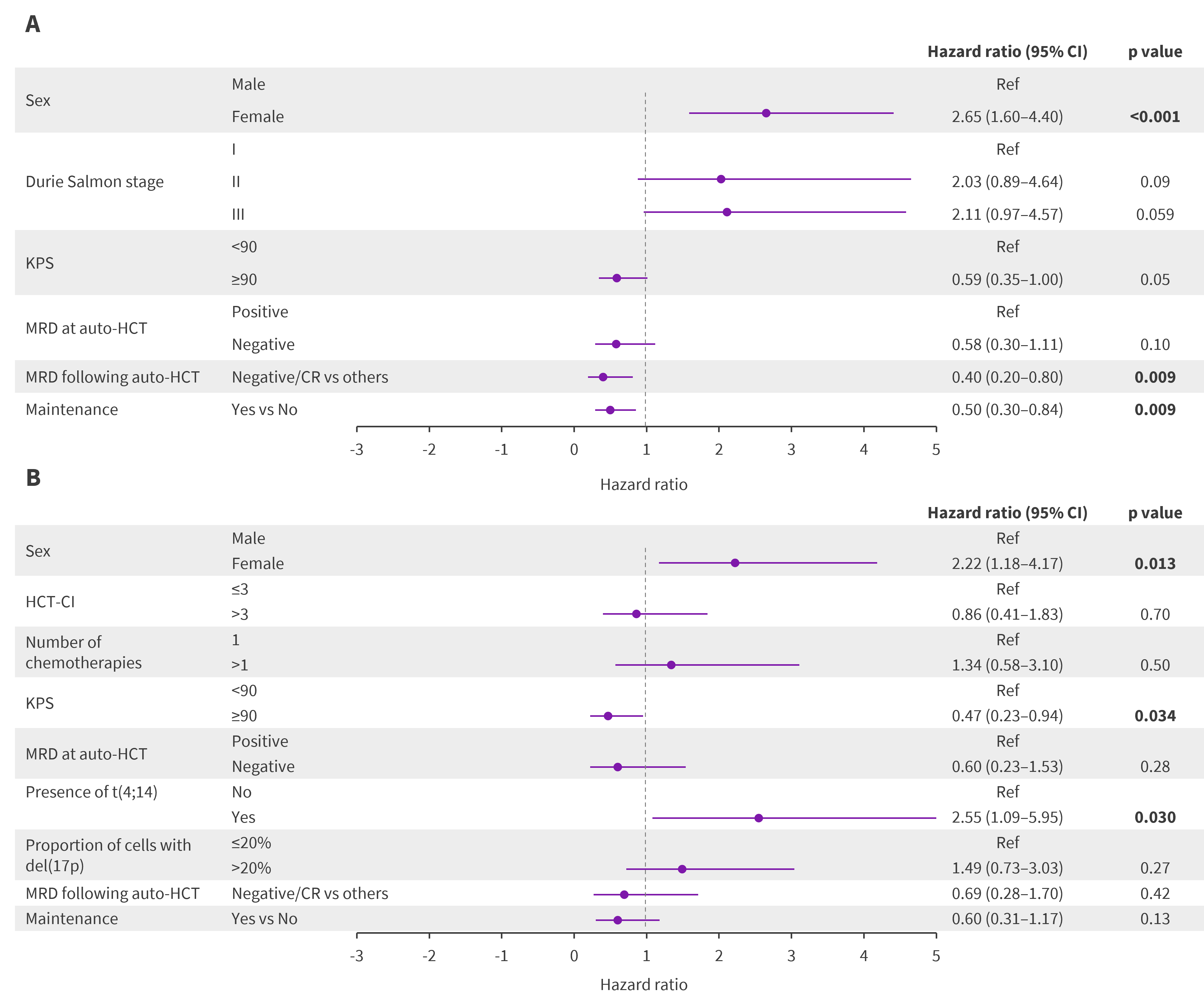 Auto-HCT, autologous hematopoietic stem cell transplantation; CI, confidence interval; CR, complete response; HCT-CI, Hematopoietic Cell Transplantation-specific Comorbidity Index; KPS, Karnofsky performance status; MRD, minimal residual disease.