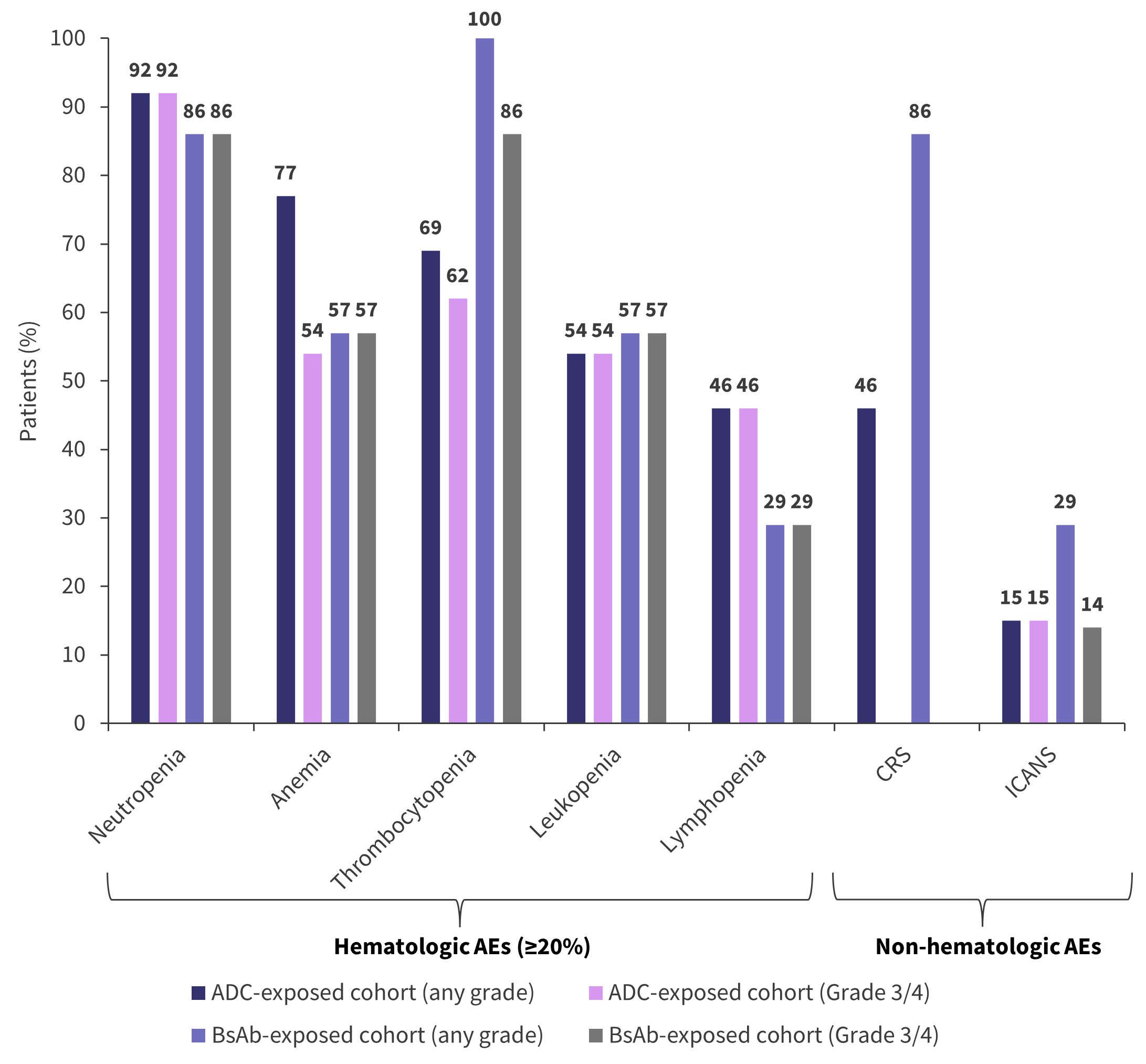 ADC, antibody–drug conjugate; AE, adverse event; BsAb, bispecific antibody; CRS, cytokine release syndrome; ICANS, immune effector cell-associated neurotoxicity syndrome.
