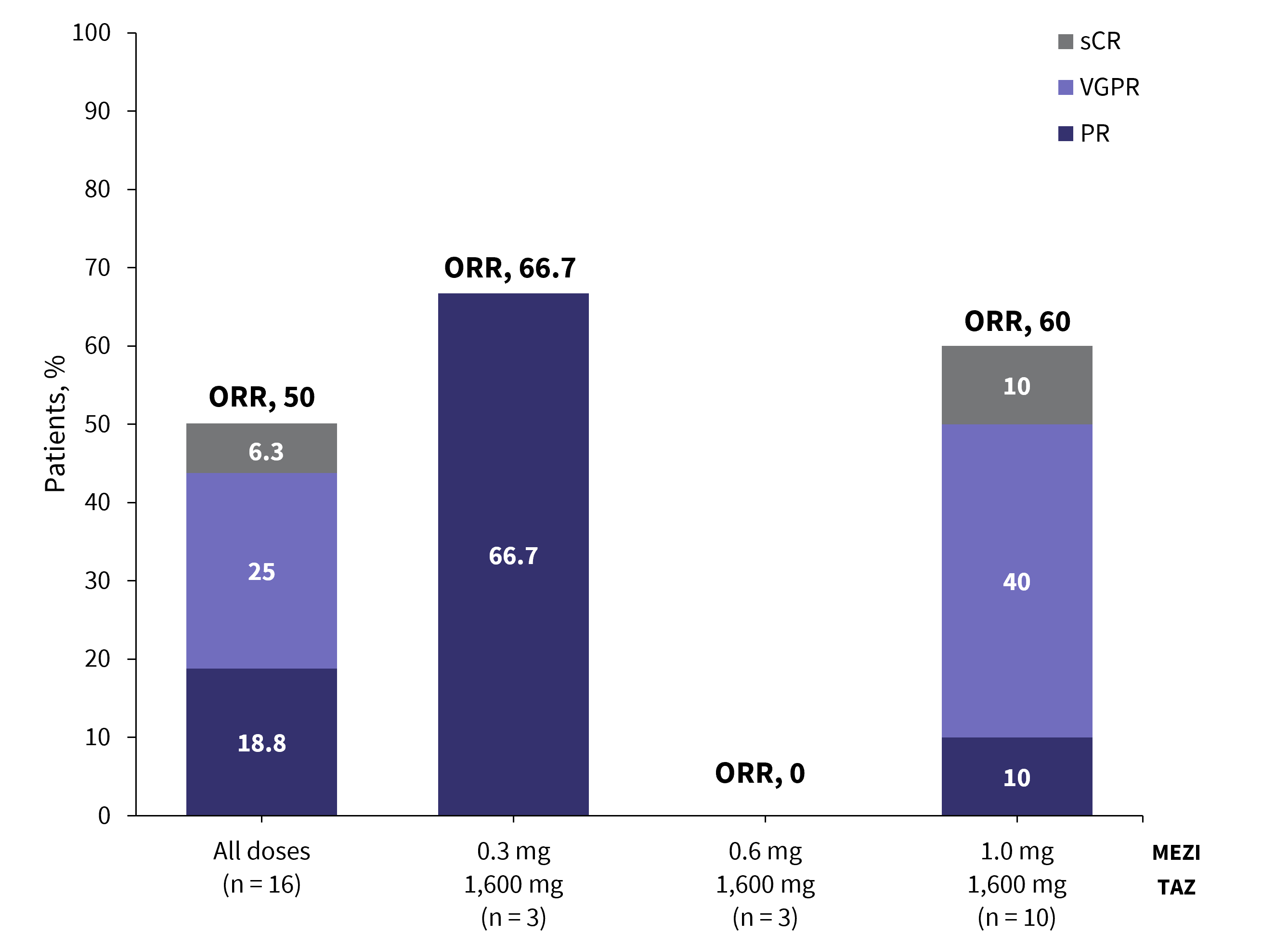 CR, complete response; MEZI, mezigdomide; MEZId, mezigdomide-dexamethasone; ORR, overall response rate; PR, partial response; sCR, stringent complete response; TAZ, tazemetostat; VGPR, very good partial response.