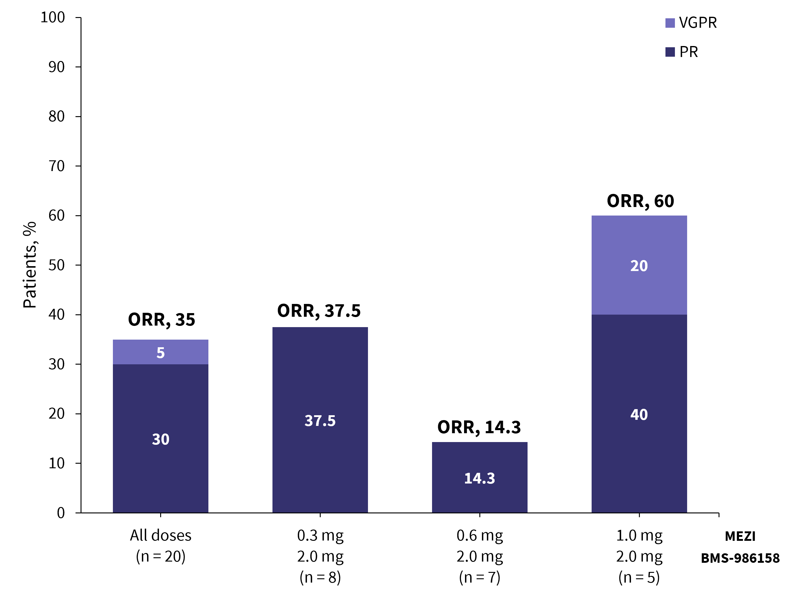 CR, complete response; MEZI, mezigdomide; MEZId, mezigdomide-dexamethasone; ORR, overall response rate; PR, partial response; VGPR, very good partial response.