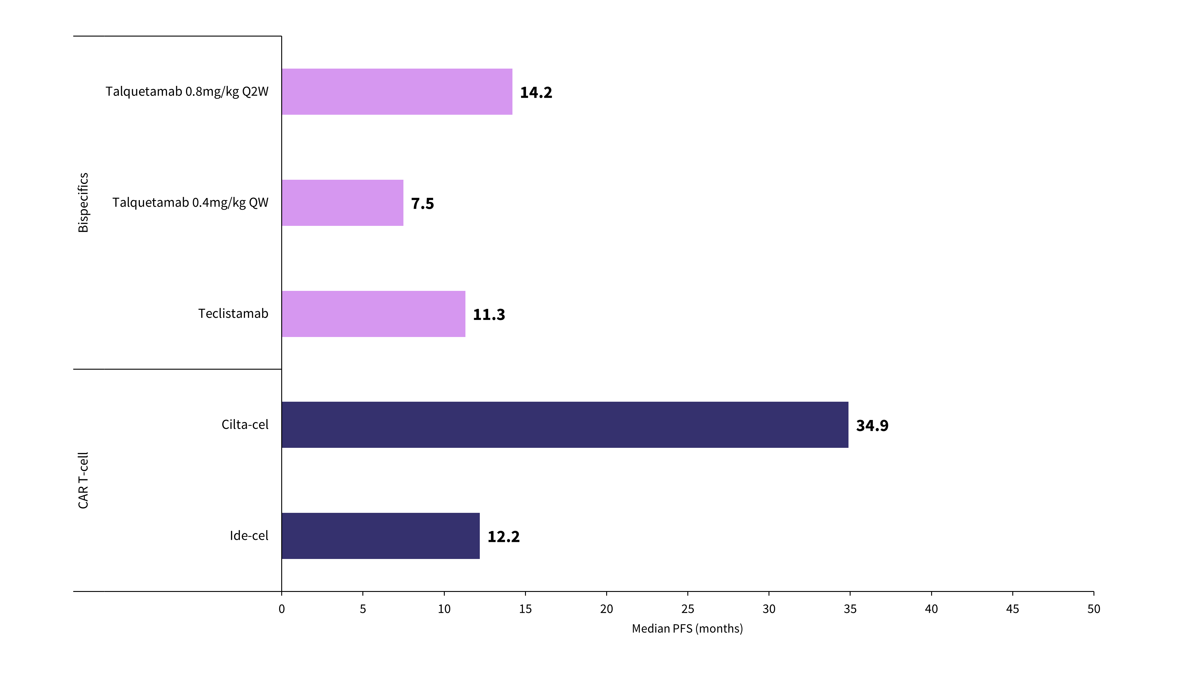 Figure 2. Median progression-free survival for CAR T-cell and bispecific antibody therapies*