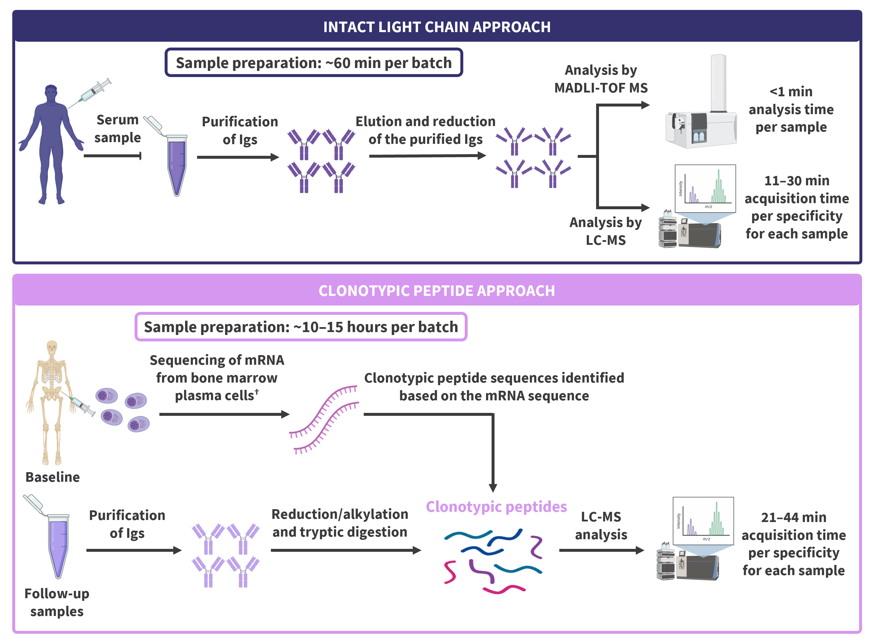 Figure 1. Workflows for the intact light chain and clonotypic peptide MS assays*