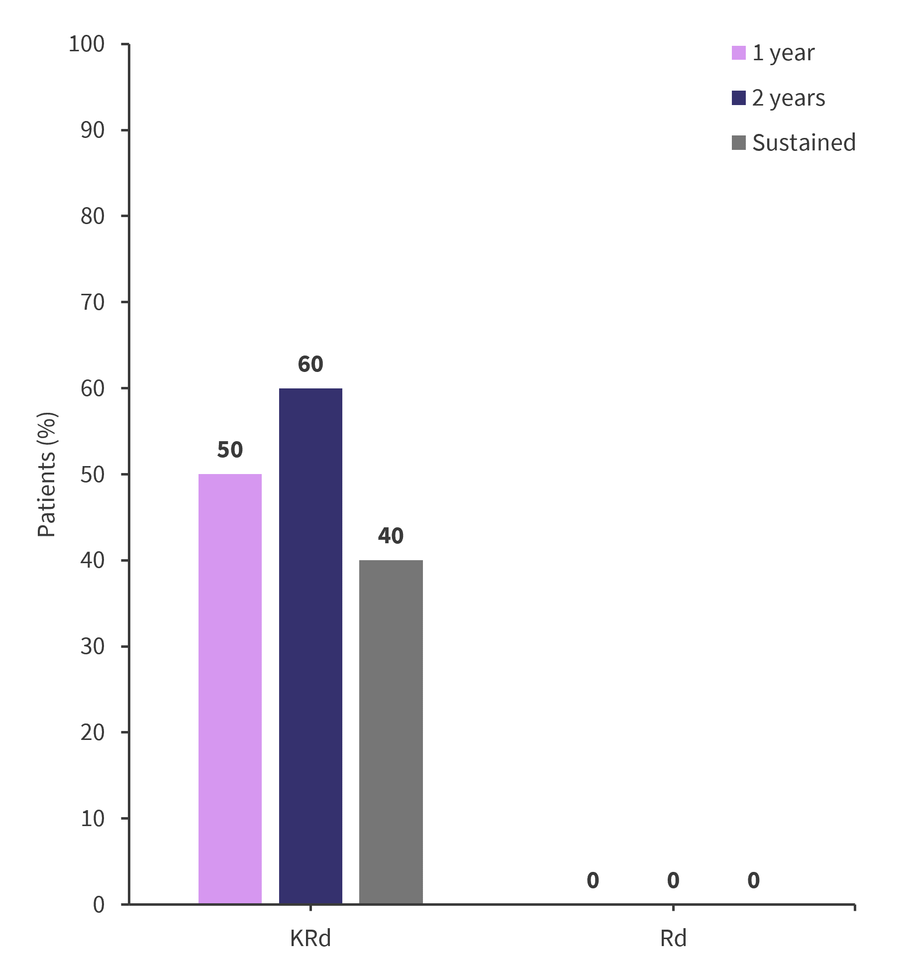 Figure 2 outlines the MRD negativity rates observed at 1-year, 2-year, and sustained for both the Rd and KRd cohorts.