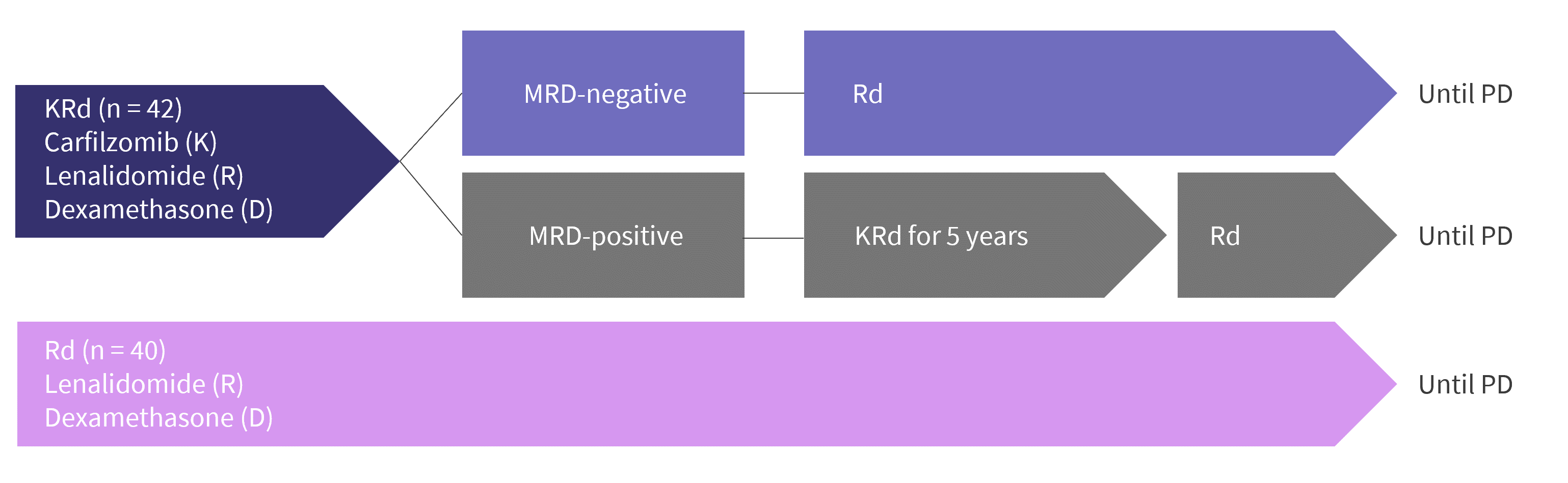 KRd, carfilzomib-lenalidomide-dexamethasone; MRD, measurable residual disease; PD, progressive disease; Rd, lenalidomide-dexamethasone.