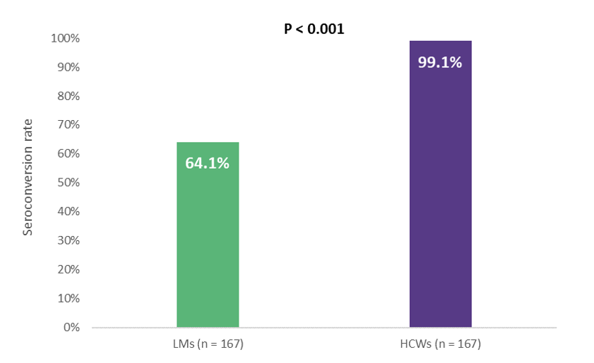 Figure 4. Percentage of patients achieving a T-cell response and T-cell response status in patients with or without seroconversion*