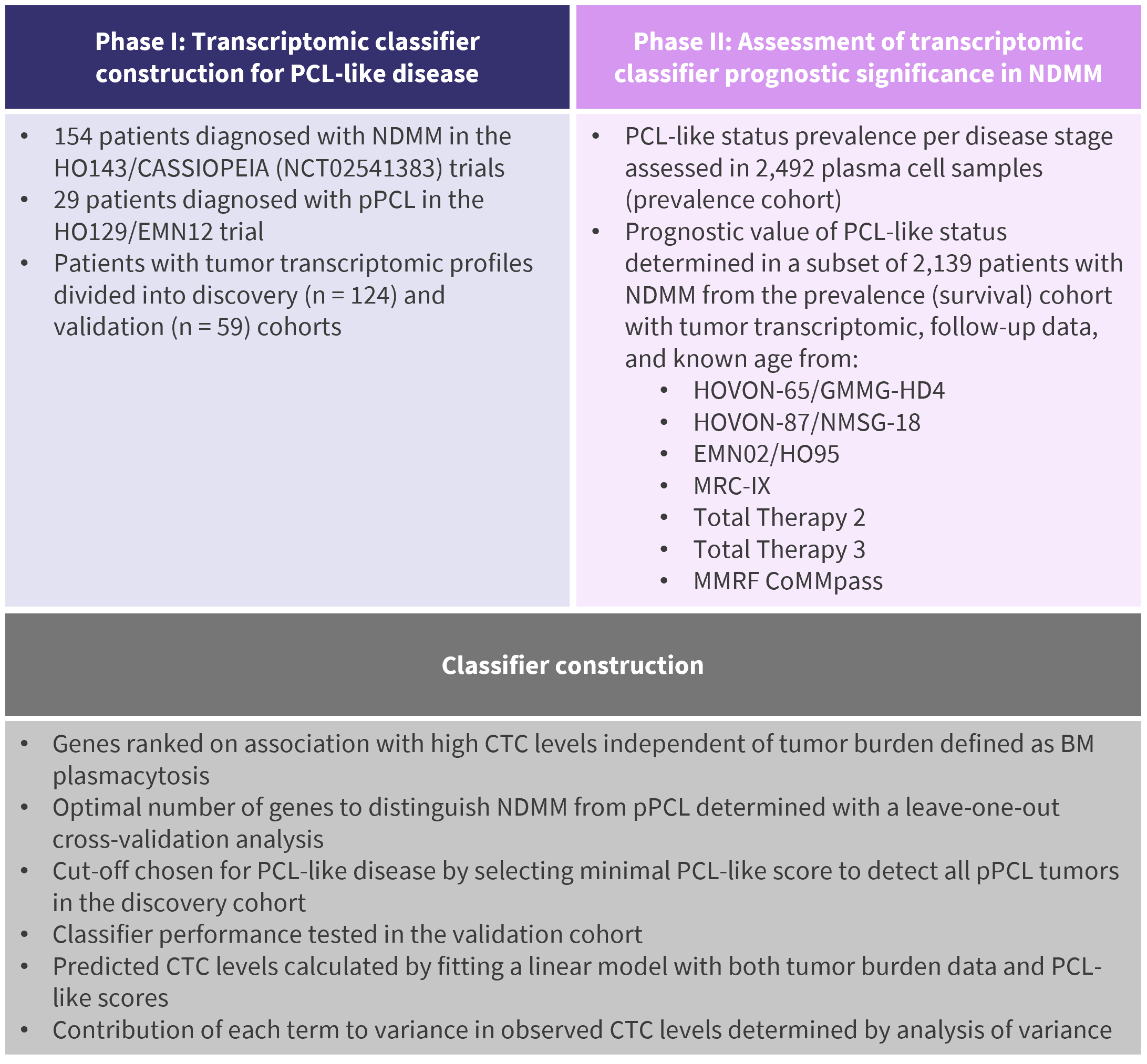 Hofste op Bruinink et al.1 hypothesized in 2022 that a molecular marker for pPCL could help to identify patients with NDMM with high-risk PCL-like disease in the absence of clinical recognition of pPCL.1 They constructed a transcriptional classifier for PCL-like disease and evaluated its prognostic value in the context of conventional NDMM high-risk markers.1