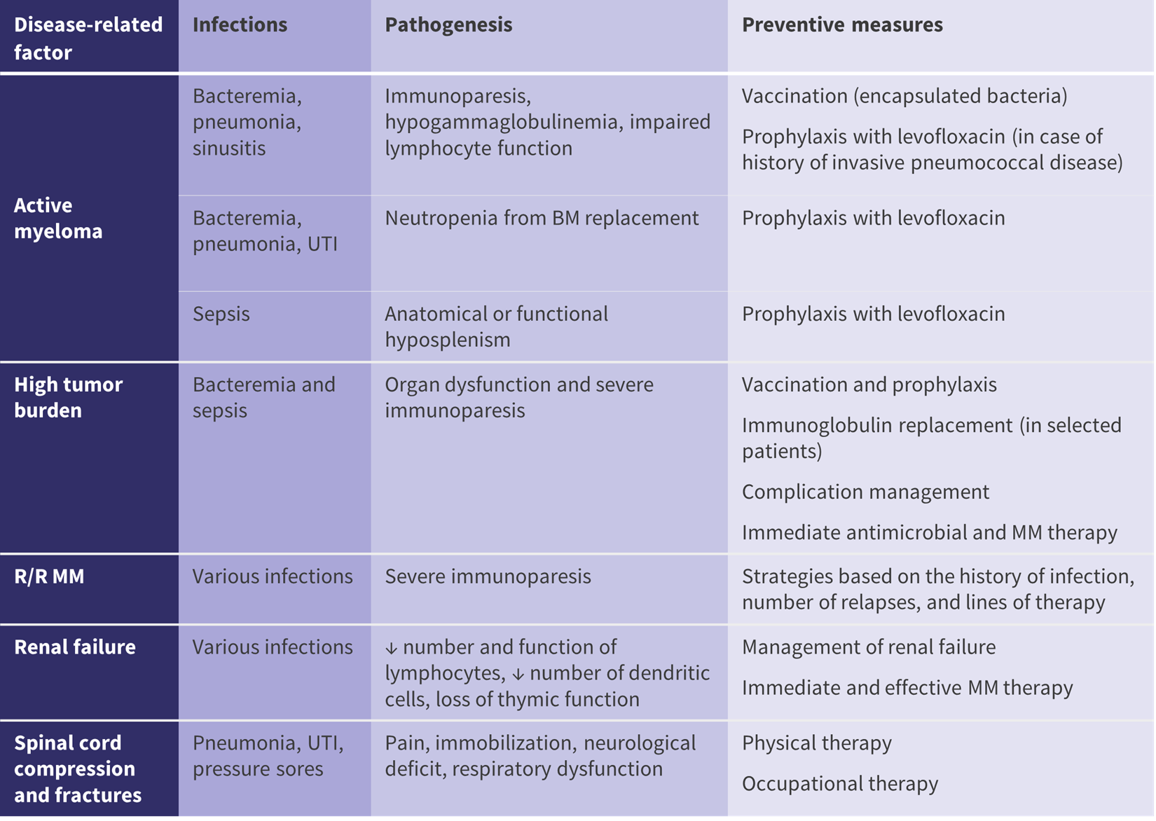 Patients with newly diagnosed MM are at high risk for infection, which may lead to premature death, even before induction therapy. Some patients are at greater risk for early and severe infection, including those with: