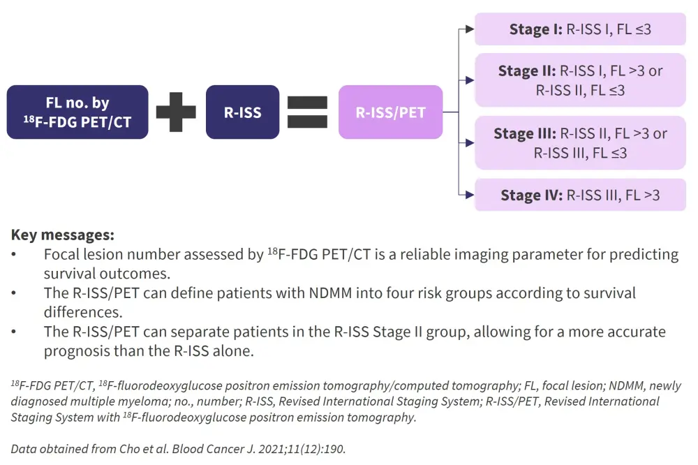 Cho et al. along with the Korean Multiple Myeloma Working Party,1 recently designed a new risk stratification system that incorporates 18F-FDG PET/CT analysis with the R-ISS to effectively stratify patients with NDMM according to their survival outcomes. The development and validation of this new risk stratification model, the R-ISS/PET, was published in the Blood Cancer Journal and is summarized below.