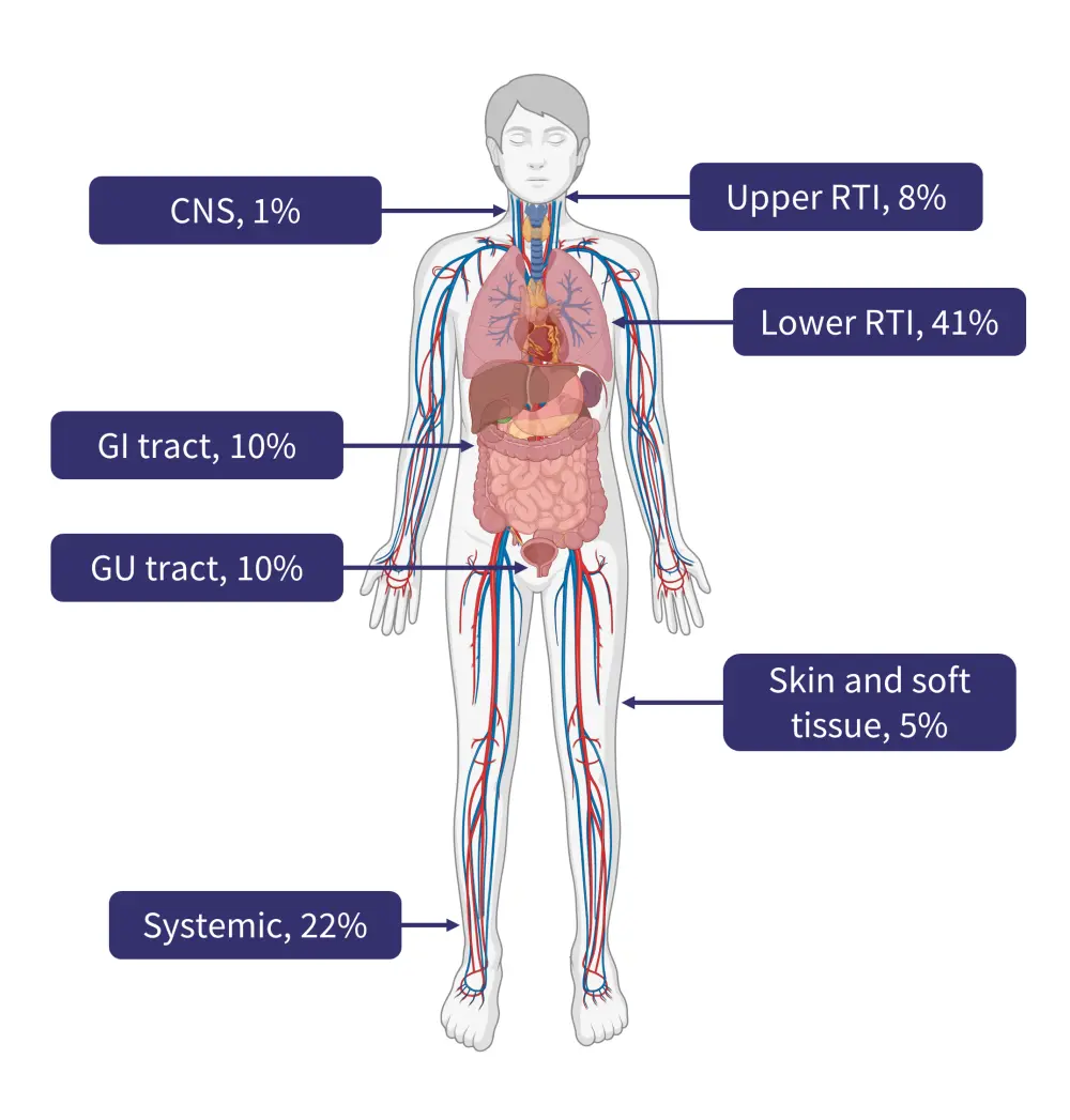 CNS, central nervous system; GI, gastrointestinal; RTI, respiratory tract infection.