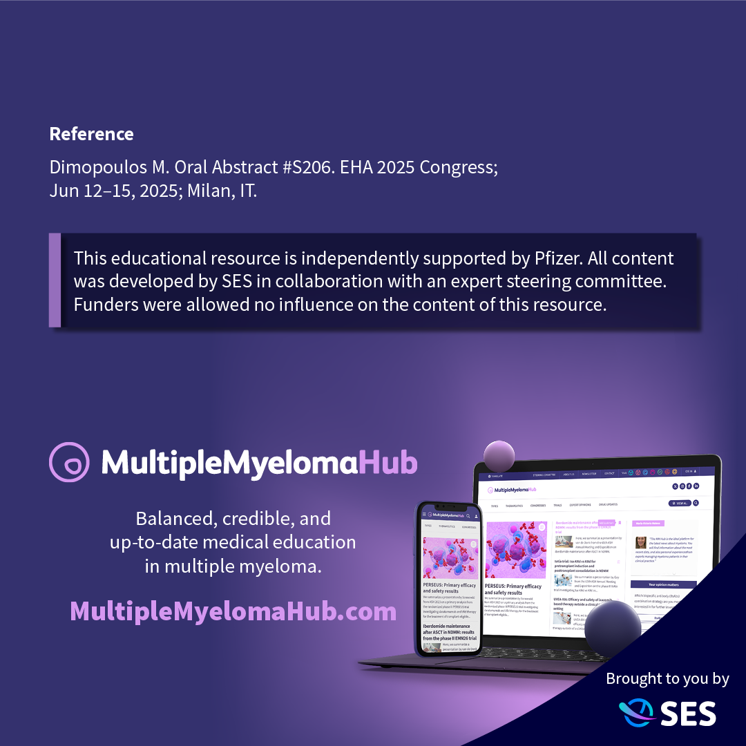 The Multiple Myeloma Hub is an independent medical education platform, sponsored by Bristol Myers Squibb, GSK, Johnson & Johnson, Legend Biotech, Pfizer, Roche, and Sanofi. The levels of sponsorship listed are reflective of the amount of funding given. View funders.
