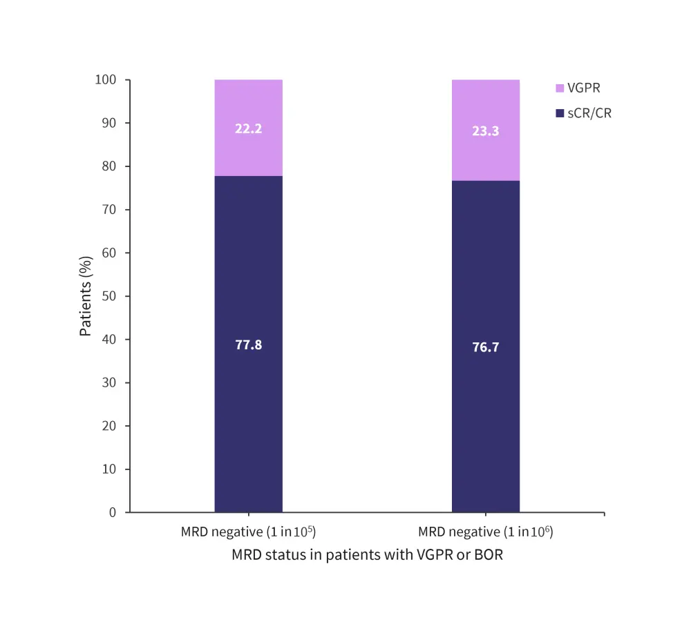 BOR, best overall response; CR, complete response; sCR, stringent complete response; MRD, minimal residual disease; VGPR, very good partial response.