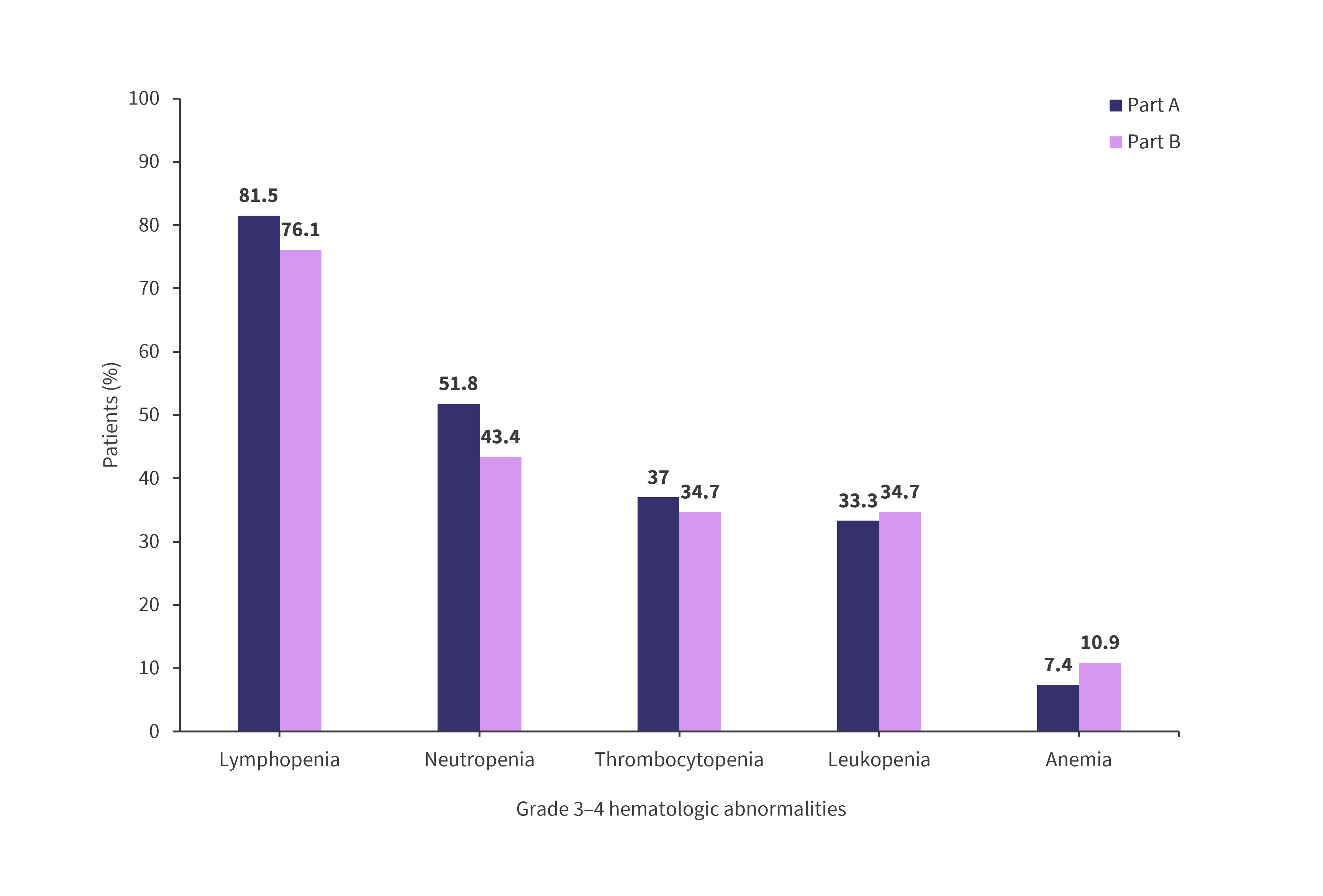 Figure 4. Grade 3–4 hematologic abnormalities in part A and B*