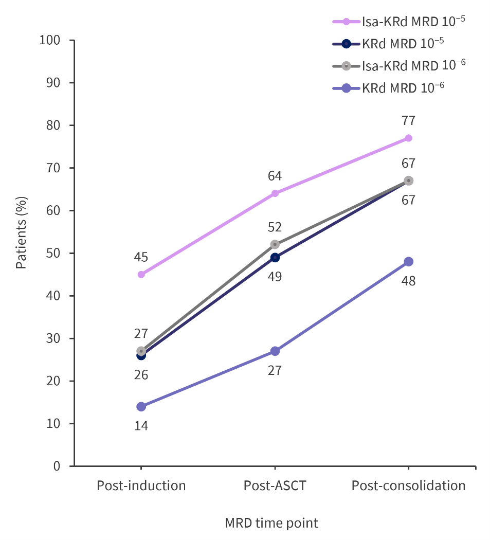 ASCT, autologous stem cell transplant; Isa-KRd, isatuximab-carfilzomib-lenalidomide-dexamethasone; KRd, carfilzomib-lenalidomide-dexamethasone; MRD, measurable residual disease.