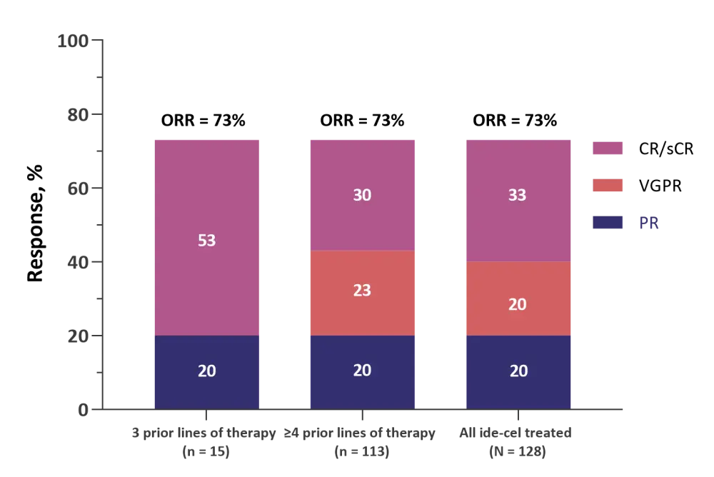 The safety and efficacy profiles of ide-cel were consistent with previously reported data, and ide-cel demonstrated promising outcomes in patients with heavily pretreated MM, irrespective of number of prior lines of therapy and risk profile.