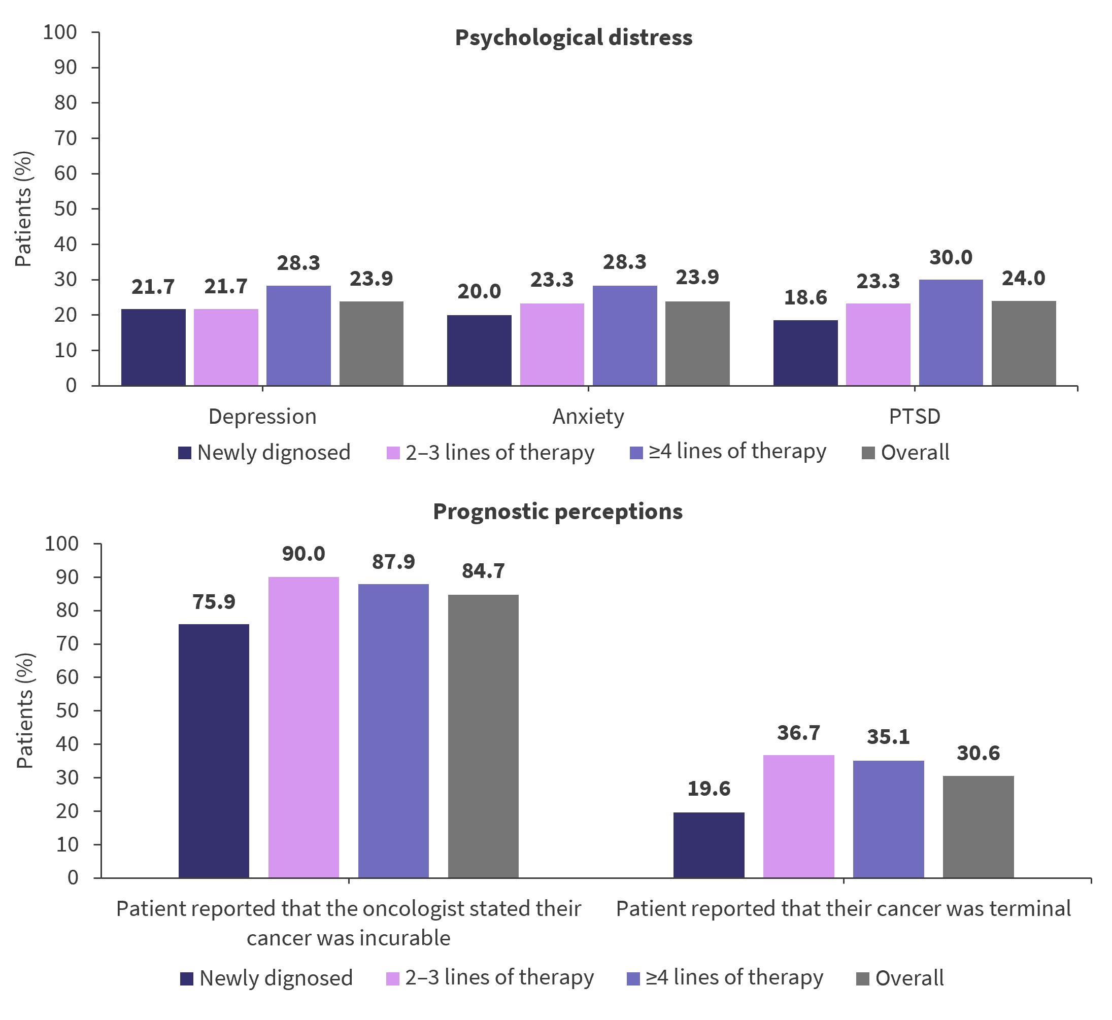 Figure 2. Patient psychological distress and prognostic perceptions according to the line of therapy*