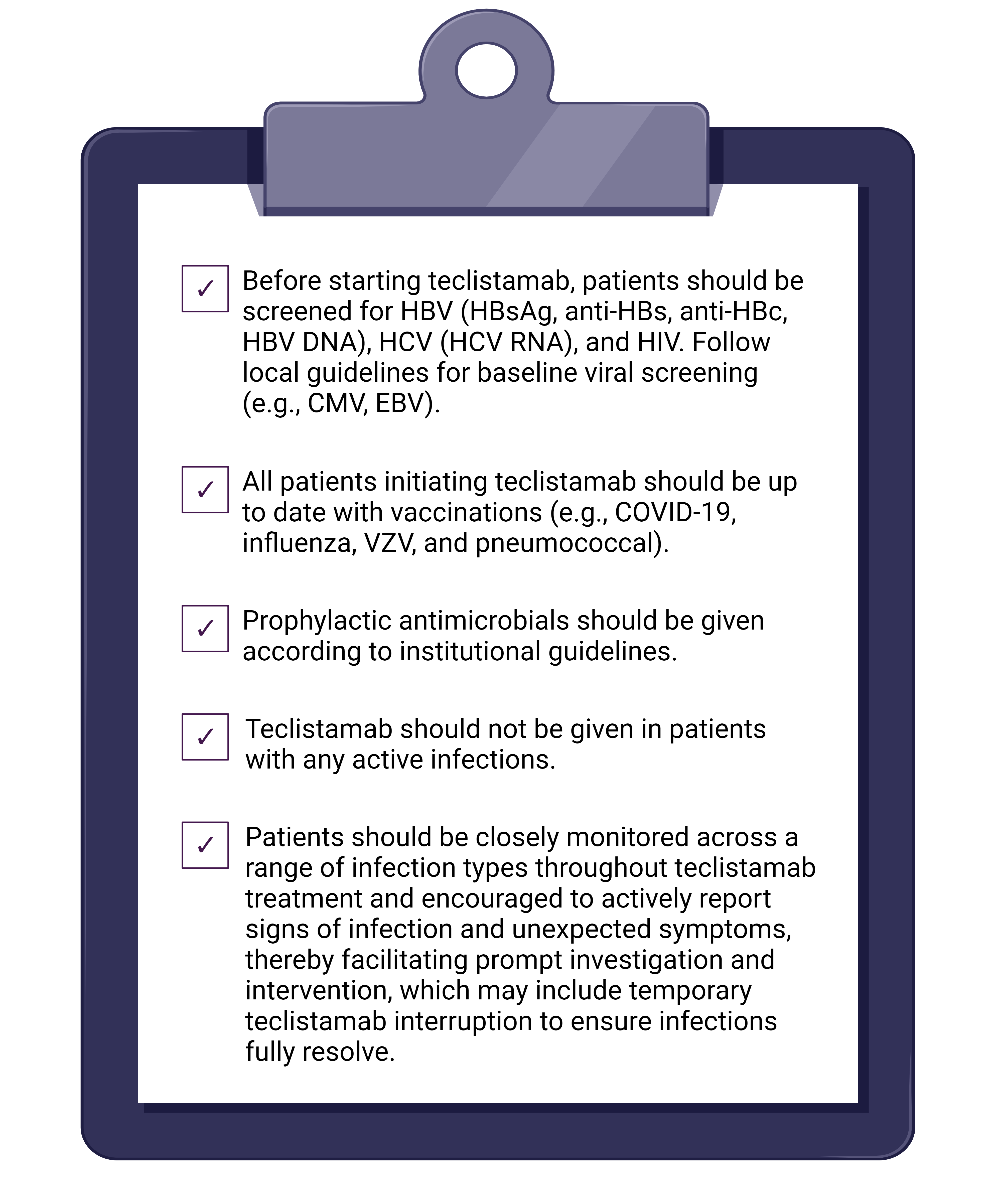 Figure 2 outlines recommendations for the screening, management, and monitoring of patients receiving teclistamab treatment.