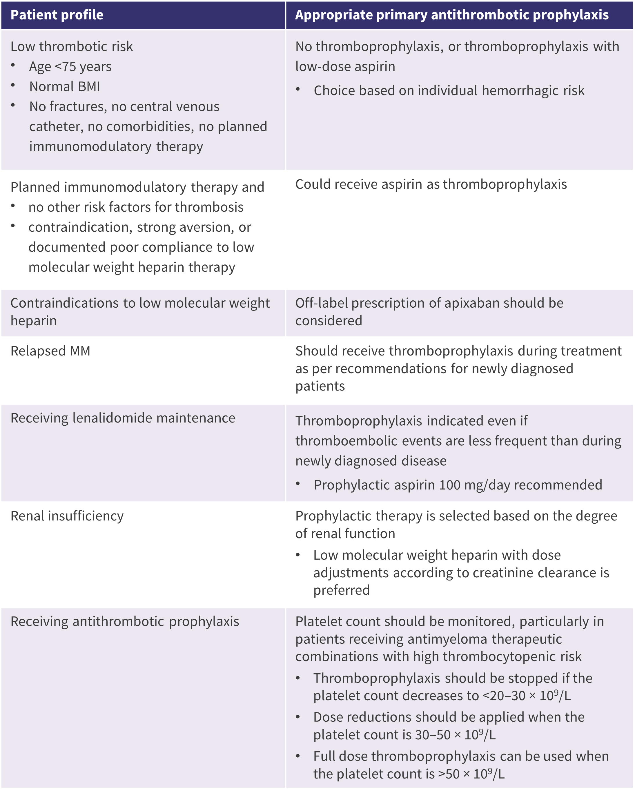 Figure 3. Considerations for primary antithrombotic prophylaxis in selected patient subpopulations with MM*