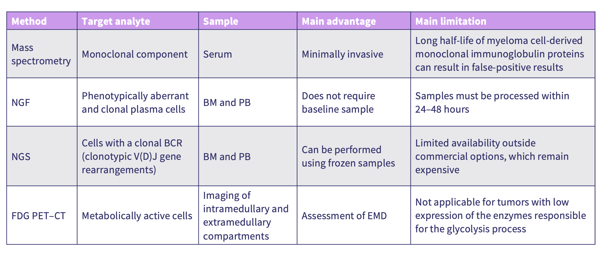 There are multiple assessment methods for MRD, including mass spectrometry, next-generation flow, next-generation sequencing, and positron emission tomography-computed tomography (PET-CT).