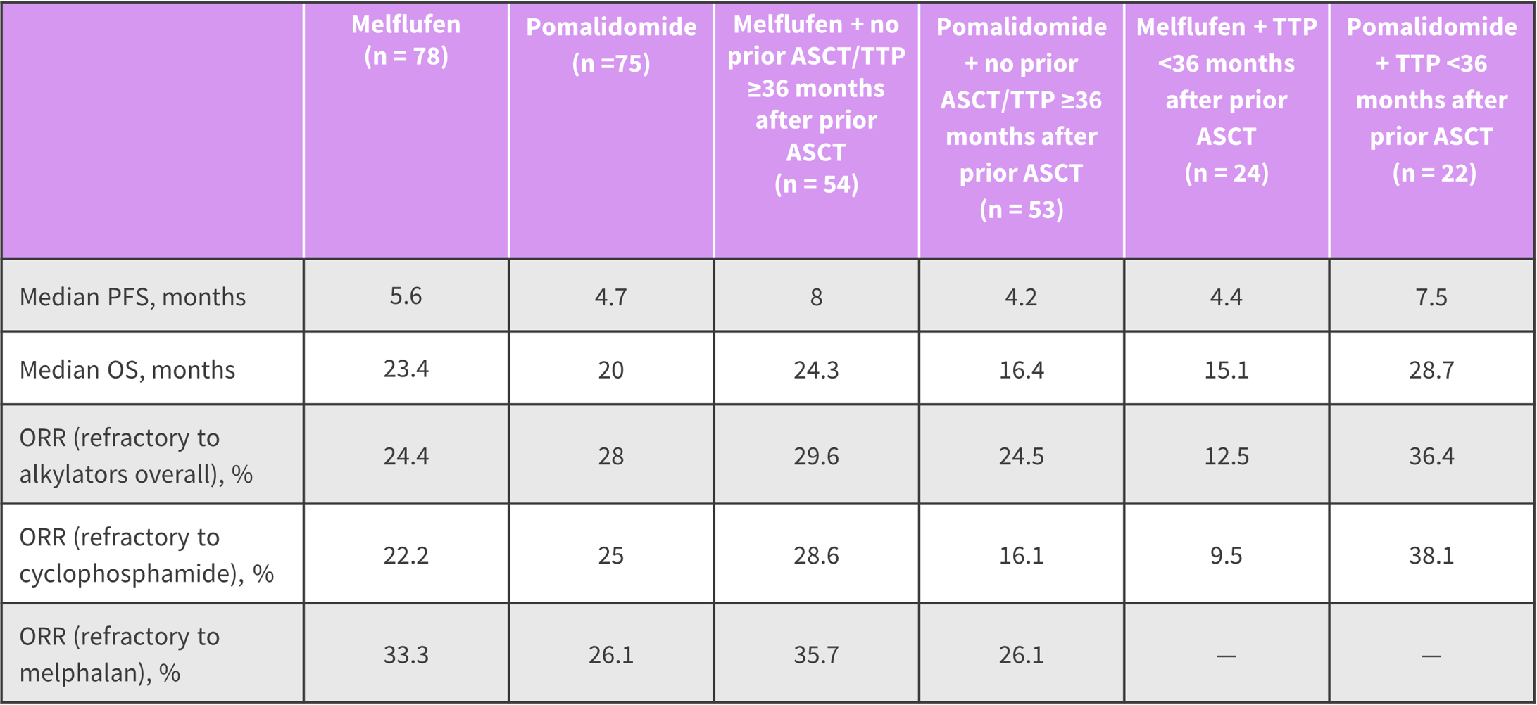 Figure 1. Response rates in patients refractory to prior alkylators and treated with melflufen or pomalidomide*
