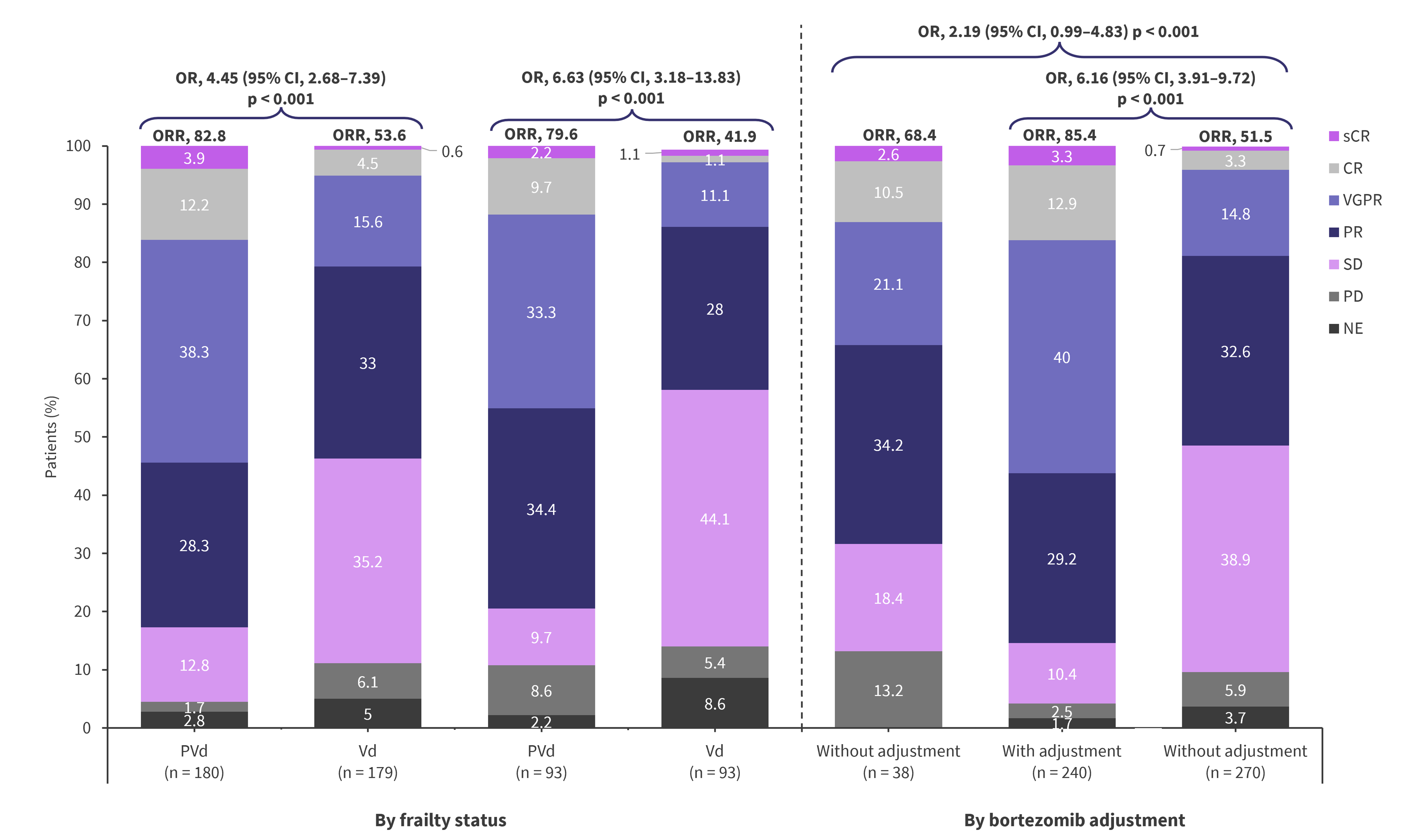 CI, confidence interval; CR, complete response; NE, not evaluable; OR, odds ratio; ORR, overall response date; PD, progressive disease; PR, partial response; sCR, stringent CR; SD, stable disease; VGPR, very good PR.
