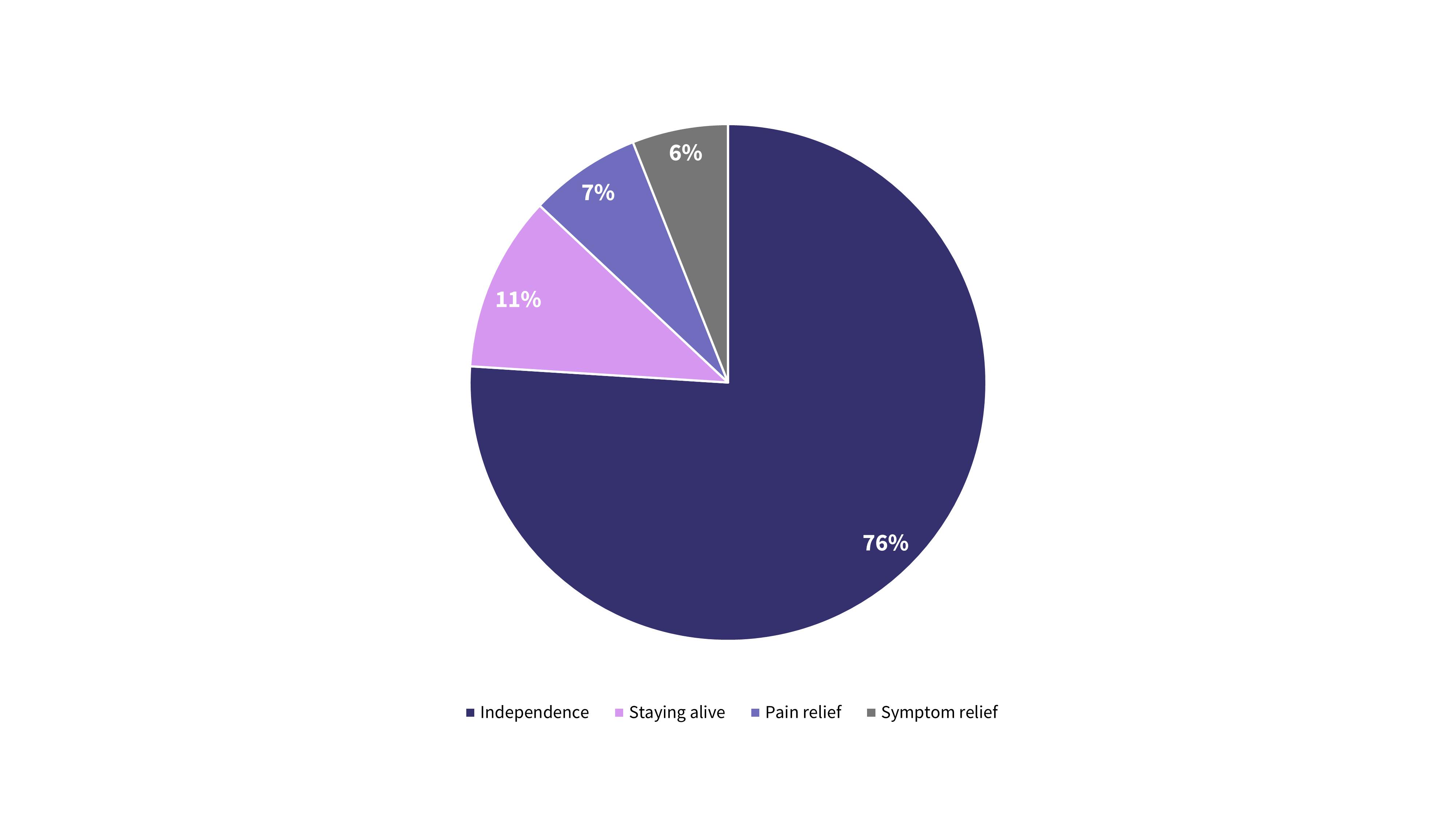 In another survey in which patients were asked their most important health goal, independence was most commonly selected as a primary goal. The other common health goals are shown in Figure 5.
