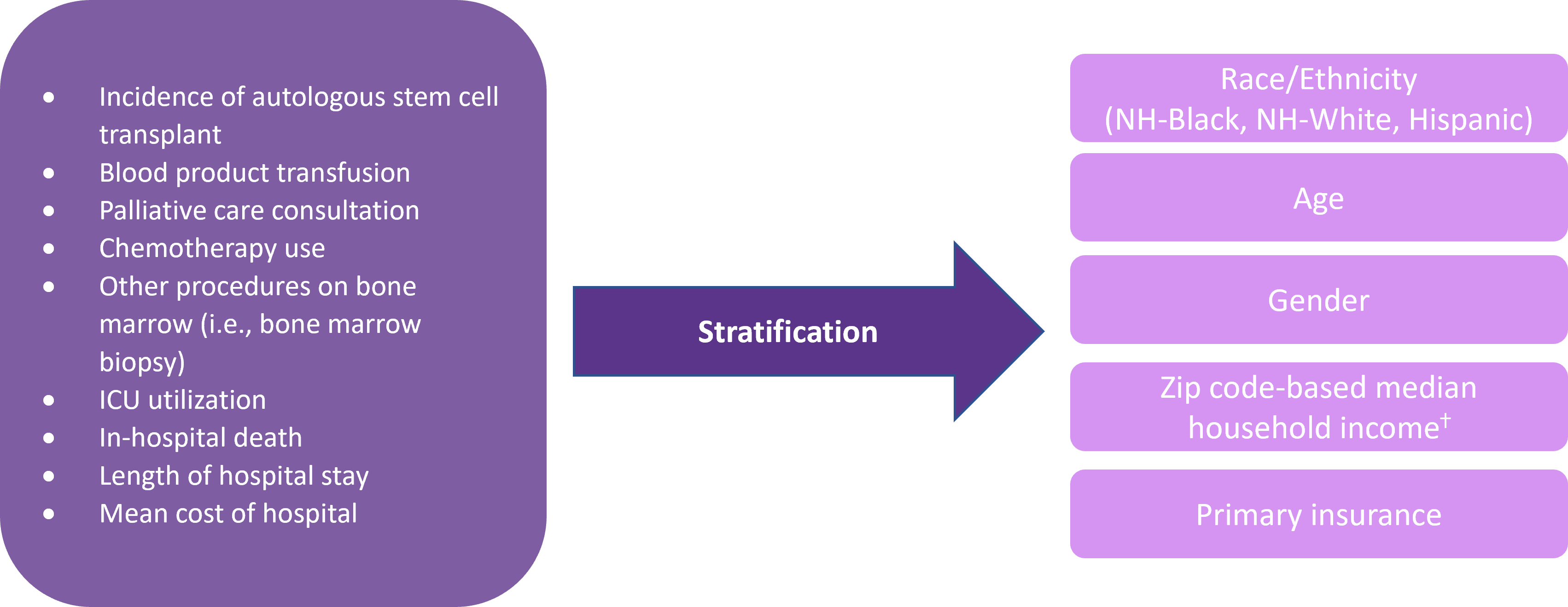 Figure 1. Variables associated with MM in-hospitalization and the socio-demographic characteristics used to stratify this data