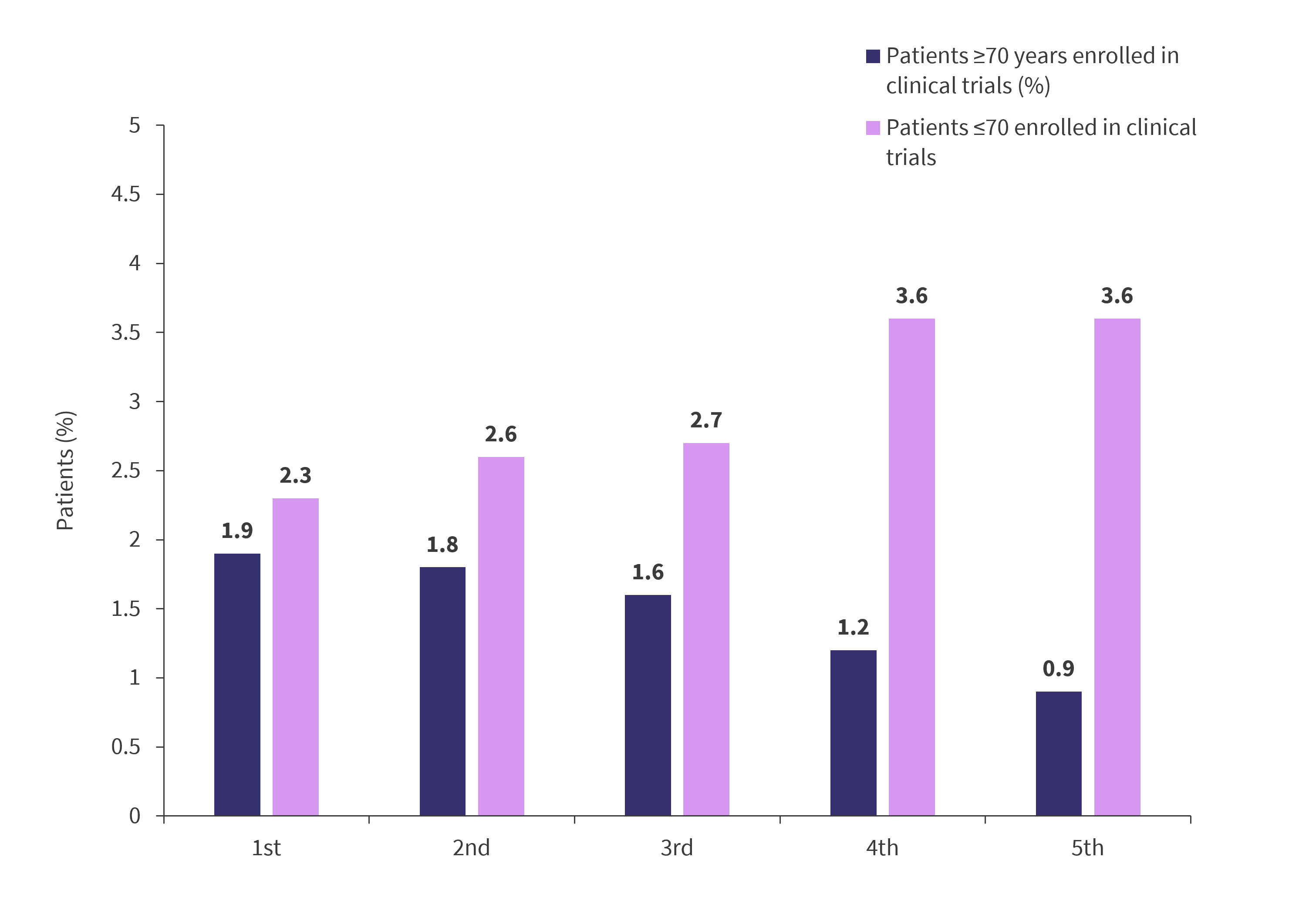 Figure 2. Rates of clinical trial participation for difference lines of treatment in patients aged ≥70 years and ≤70 years*