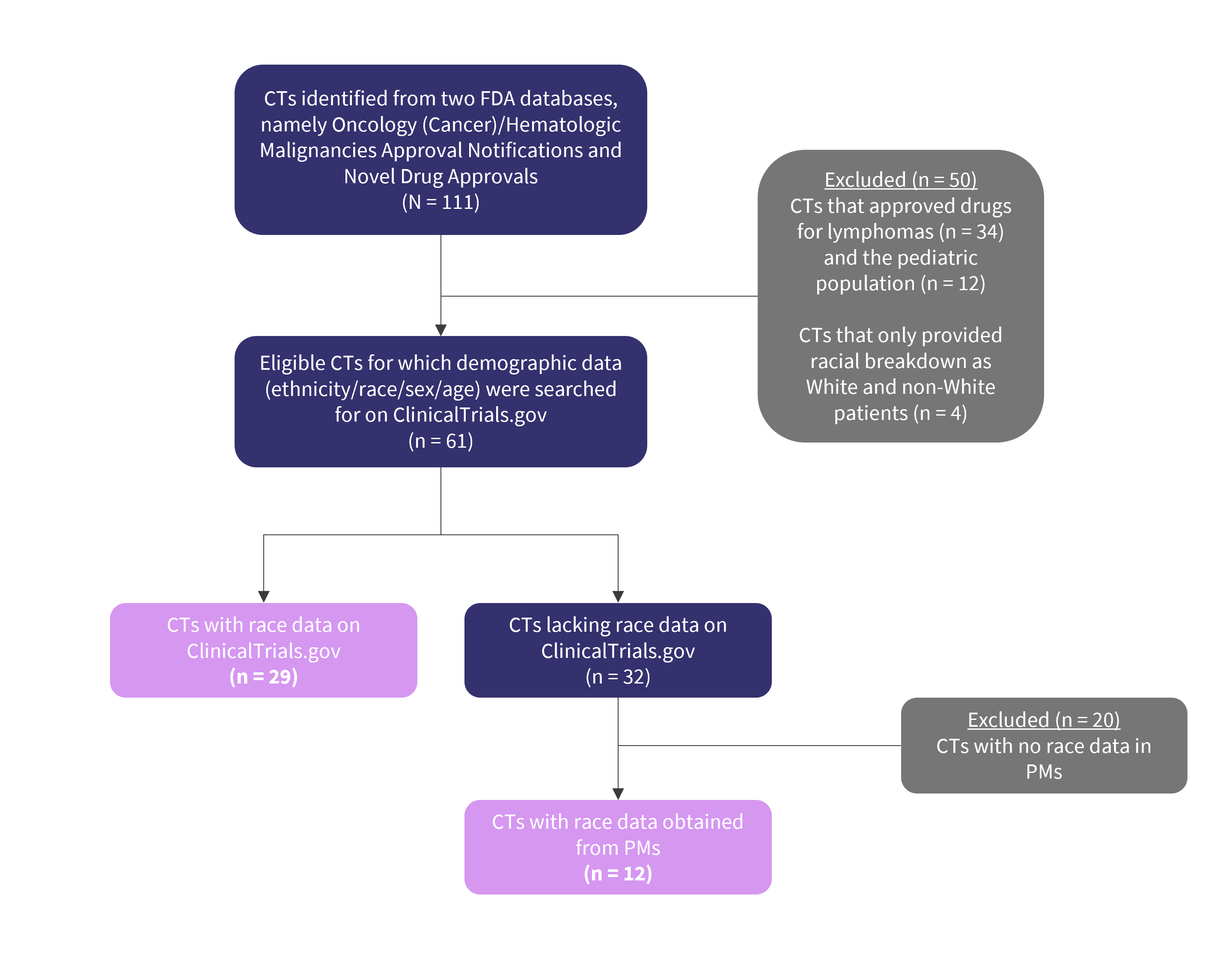Casey et al.3 conducted an analysis of the ClinicalTrials.gov database to gather demographic and geographic data from clinical trials involving patients with MM.3 Data collected, including race, ethnicity, sex, and malignancy subtypes, were compared with real-world data on disease rates by race, ethnicity, and country-level mortality. The study was primarily focussed on identifying how the race and ethnic origin of patients with MM can impact clinical trial recruitment.