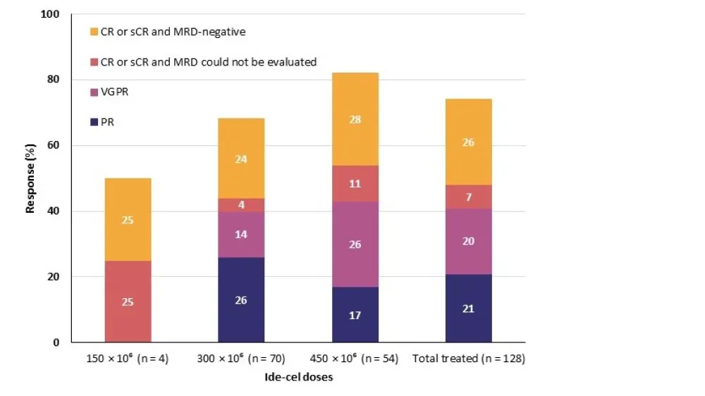 CR, complete response; ide-cel, idecabtagene vicleucel; MRD, measurable residual disease; PR, partial response; sCR, stringent complete response; VGPR, very good partial response.