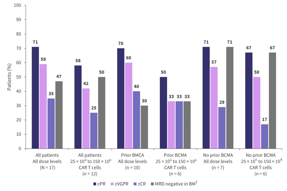 BCMA, B-cell maturation antigen; BM, bone marrow; CAR, chimeric antigen receptor; CR, complete response; MRD, minimal residual disease; PR, partial response; VGPR, very good partial response.