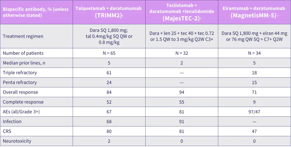 Figure 2. Summary of patient characteristics and topline data from clinical trials of bispecific antibody combinations*