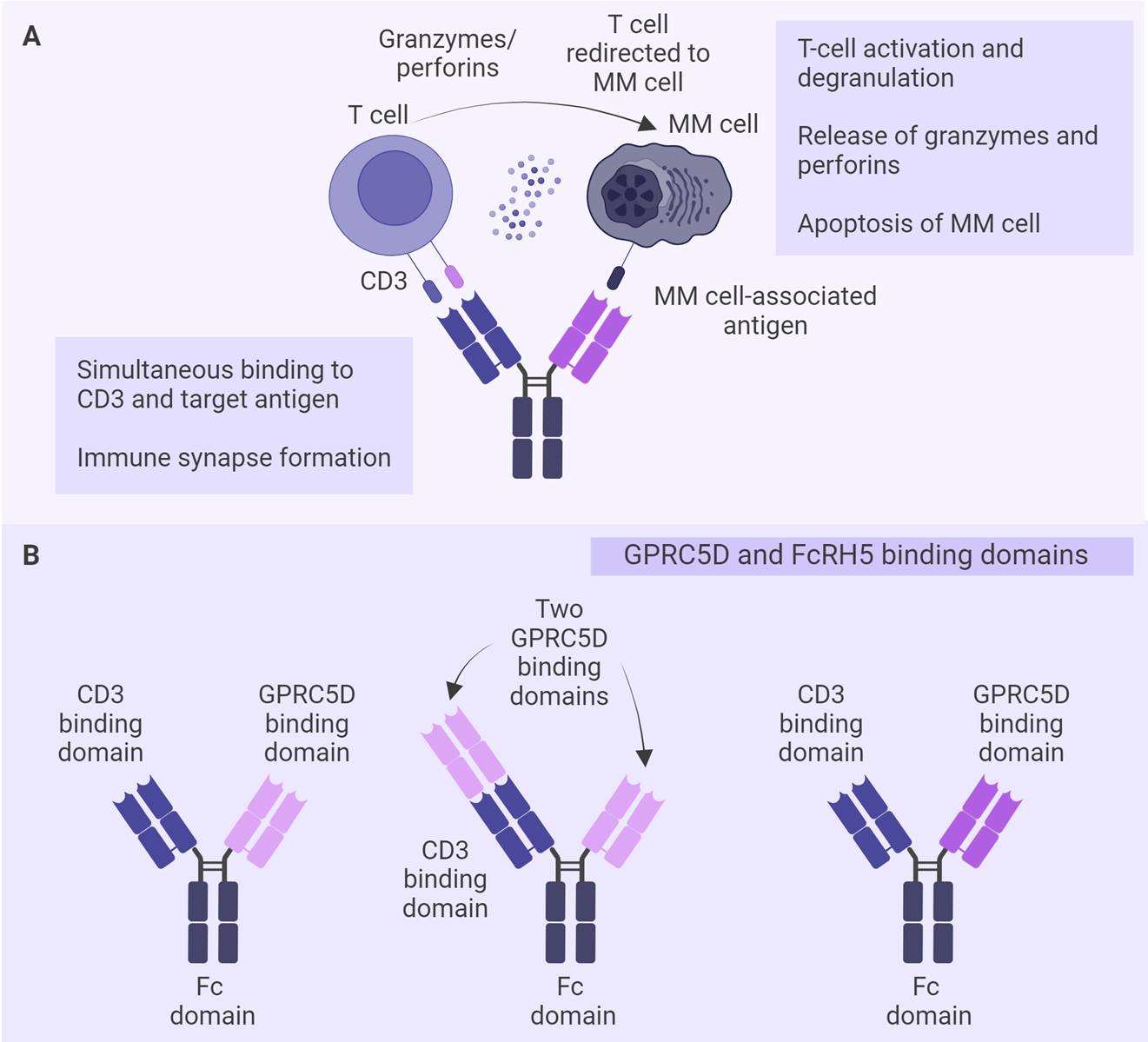 c, fragment crystallizable region; FcRH5, Fc receptor-homolog 5; GPRC5D, G protein–coupled receptor class C group 5 member D; MM, multiple myeloma.