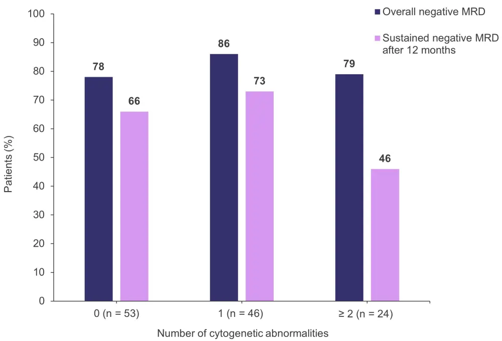 Figure 1. Rates of overall MRD and sustained MRD after 12 months according to the number of high-risk cytogenetic abnormalities*