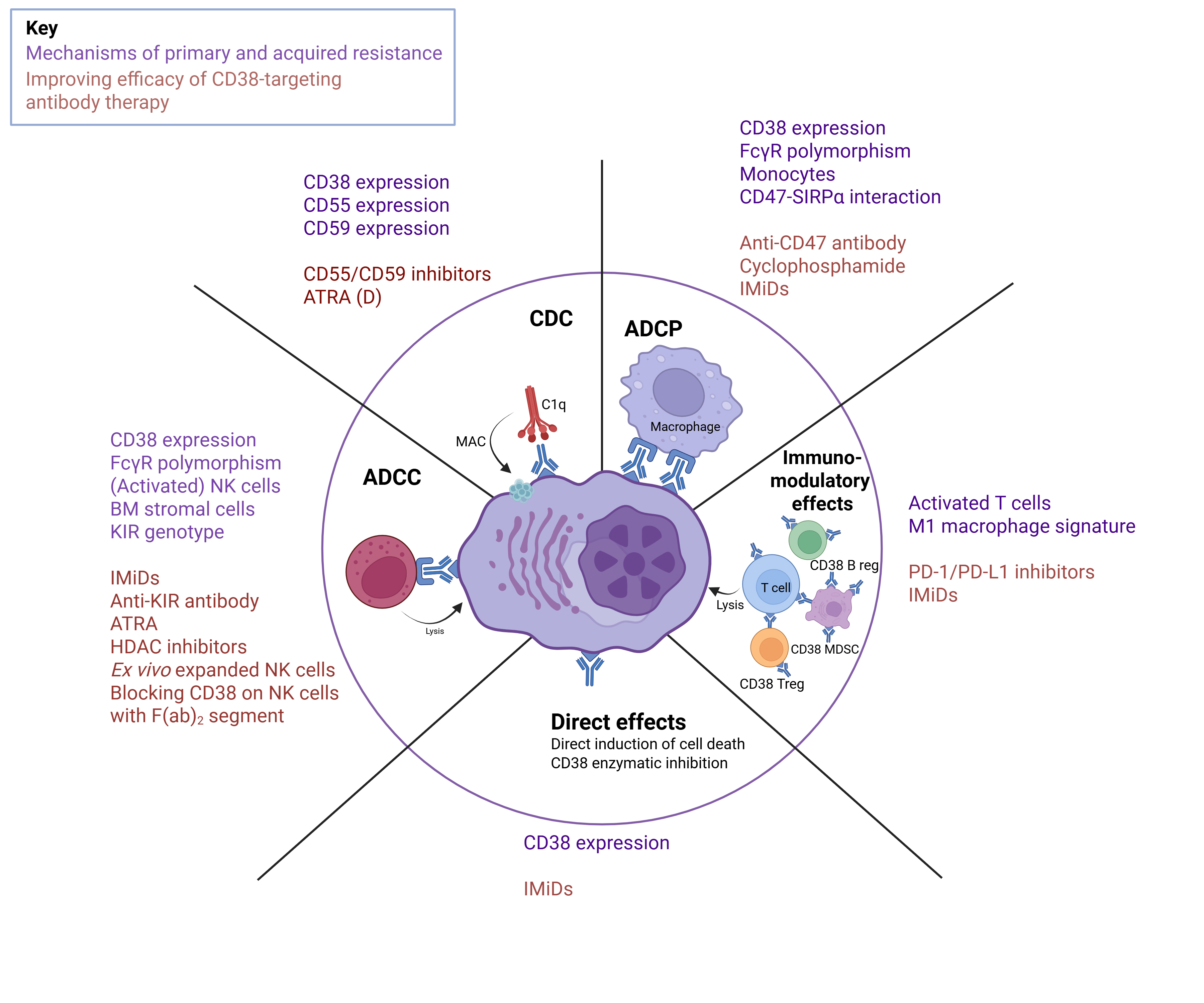 Resistance to direct effect: The efficacy of anti-CD38 antibodies depends significantly on CD38 expression levels; however, the mechanism behind acquired resistance to the direct cytotoxic effects remains unclear.2