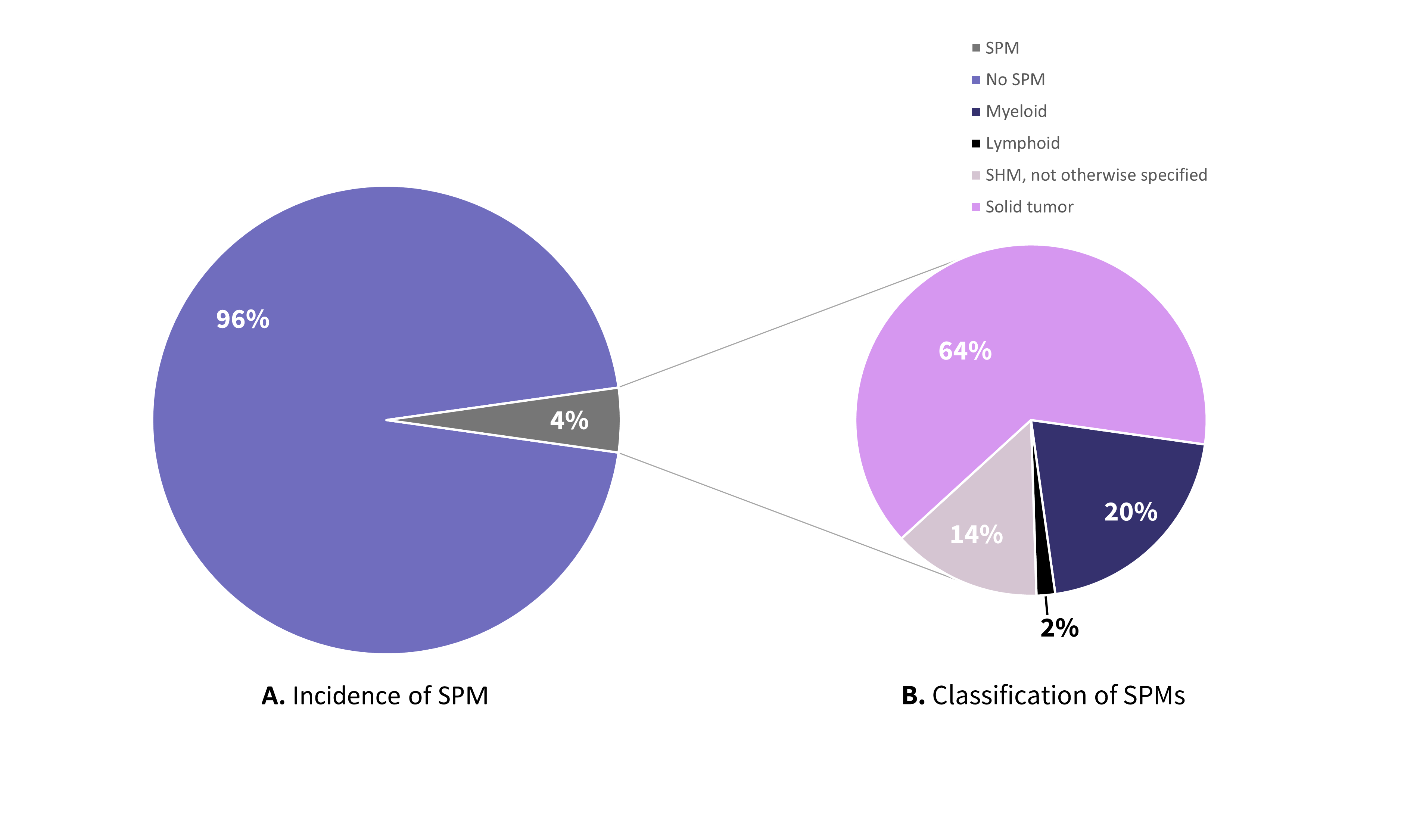 Figure 1. A. Incidence of SPMs in total cohort and B. Classification of SPMs*