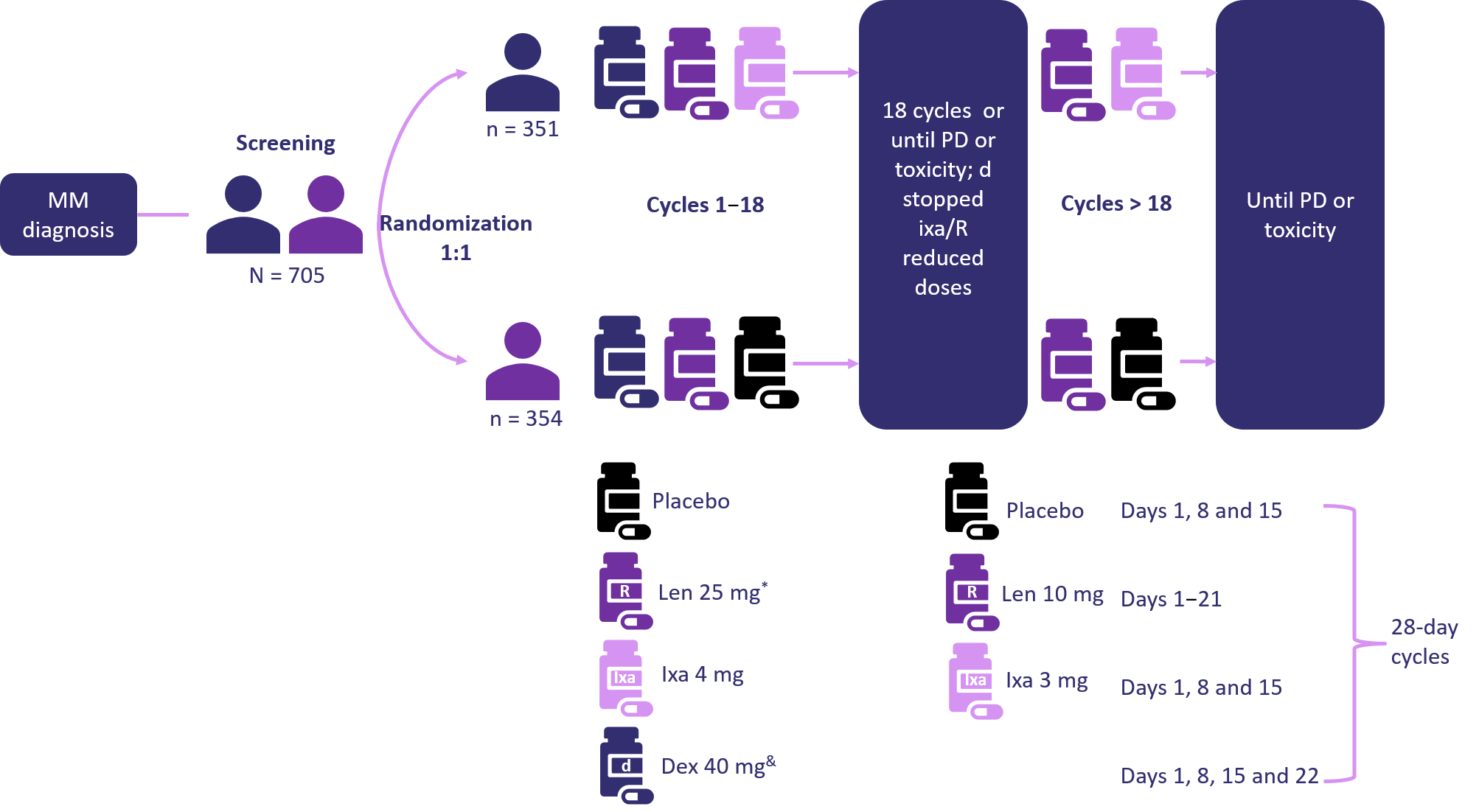 Patients were randomized 1:1 to receive Rd with a placebo or with ixa as shown in Figure 1.